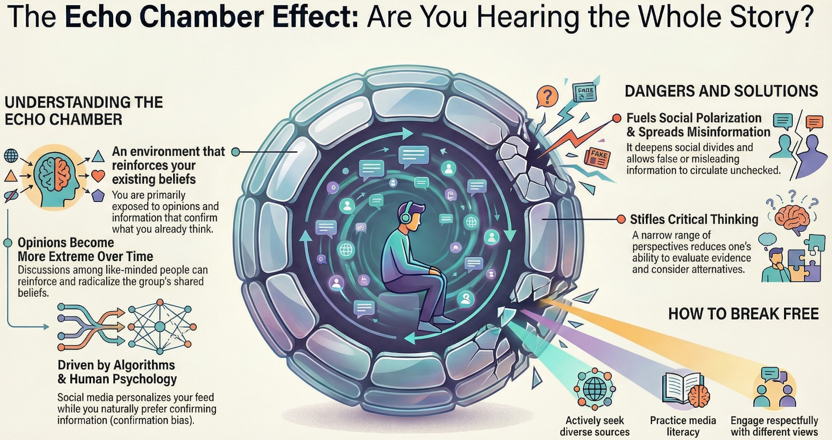 The walls of our echo chambers are built by algorithms but reinforced by our own minds—which opposing viewpoint will you consciously seek out and try to understand today?