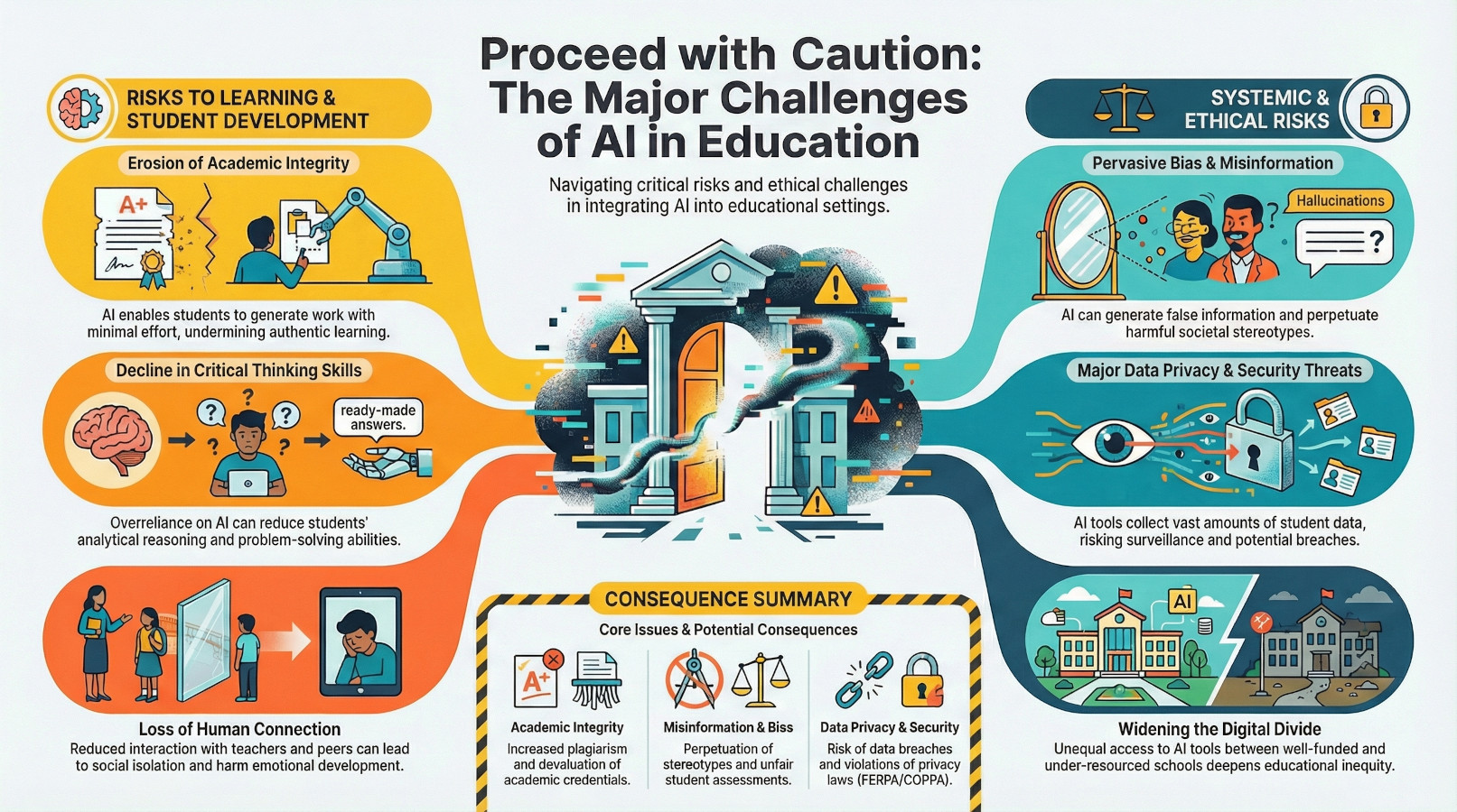 The long-standing "digital divide" is rapidly evolving into a more pronounced "AI divide," which risks widening existing educational inequalities. Access to transformative AI tools is becoming a new marker of privilege, creating a stark contrast between what is possible in well-funded and under-resourced institutions.